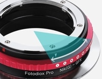 トップ > Fotodiox > Fotodiox NikG-GFX(ニコンFマウントレンズ(Gタイプ対応) → 富士フイルムGFX Gマウント変換) 絞りリング付き マウントアダプター